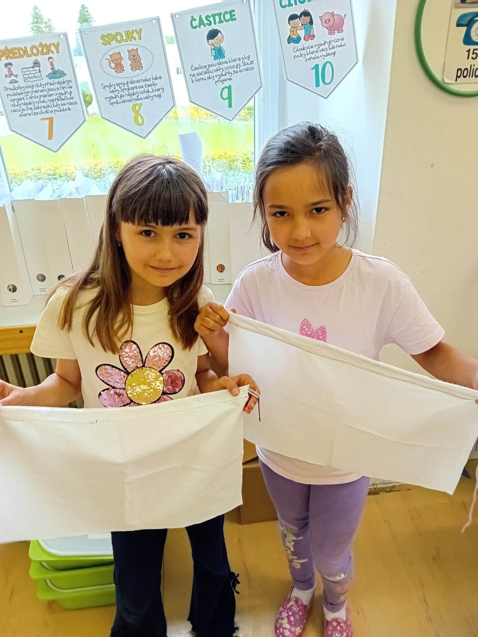 A proč jsou pytlíky prázdninové? V den vysvědčení si v nich děti odnesou prázdninovou výbavu – dárečky od paní učitelky a paní asistentky.