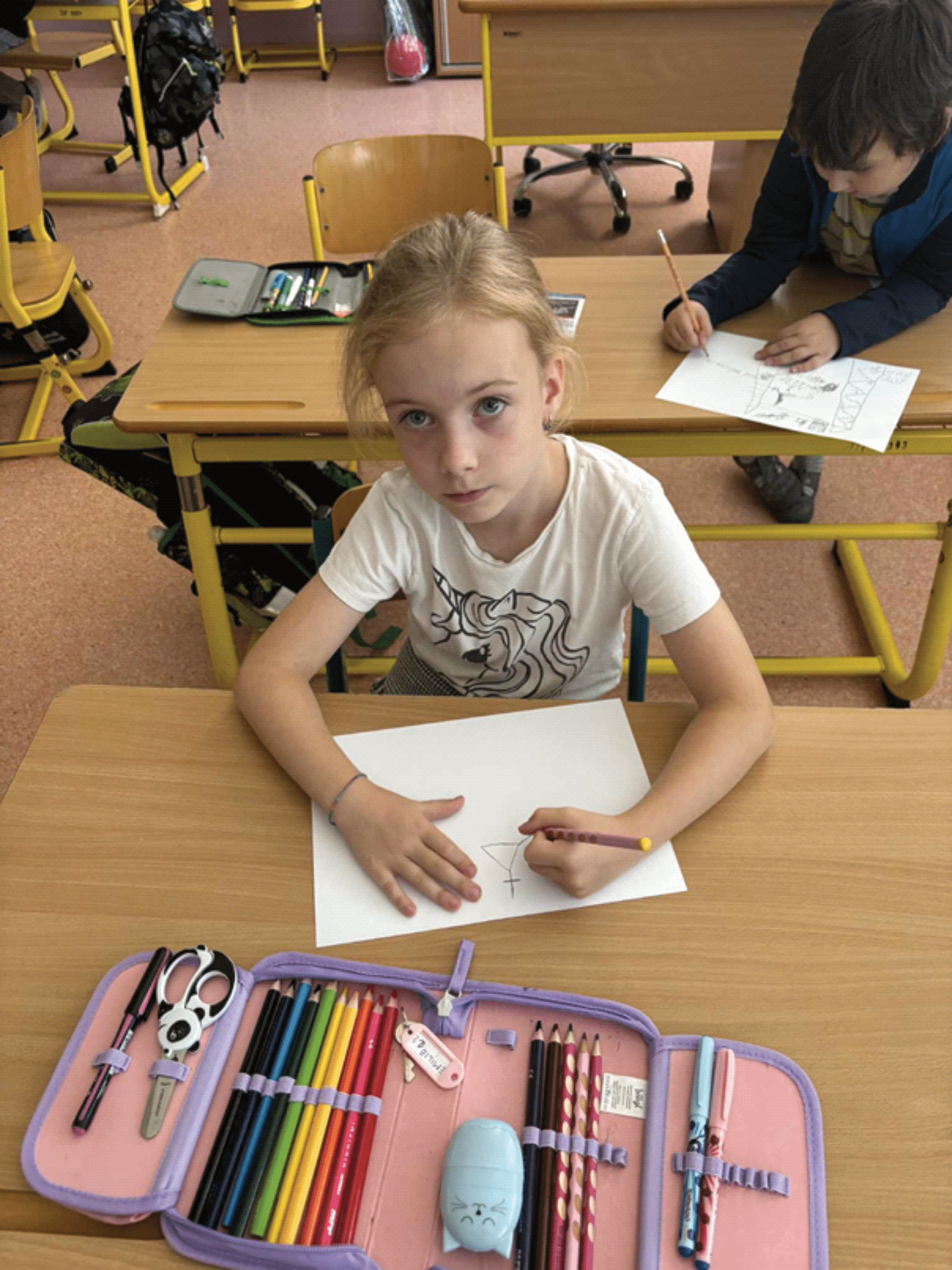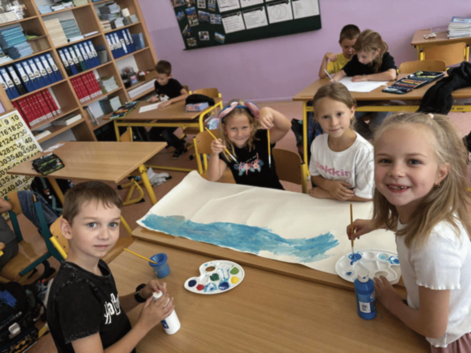 Své dojmy jsme potom každý zpracovali podle svého vlastního výběru – malovali jsme, kreslili jsme, vypracovávali pracovní list. Někdo pracoval sám, jiný ve skupině, ale všichni jsme si to moc užili a i proto mohla vzniknout naše nástěnka z tohoto dne.