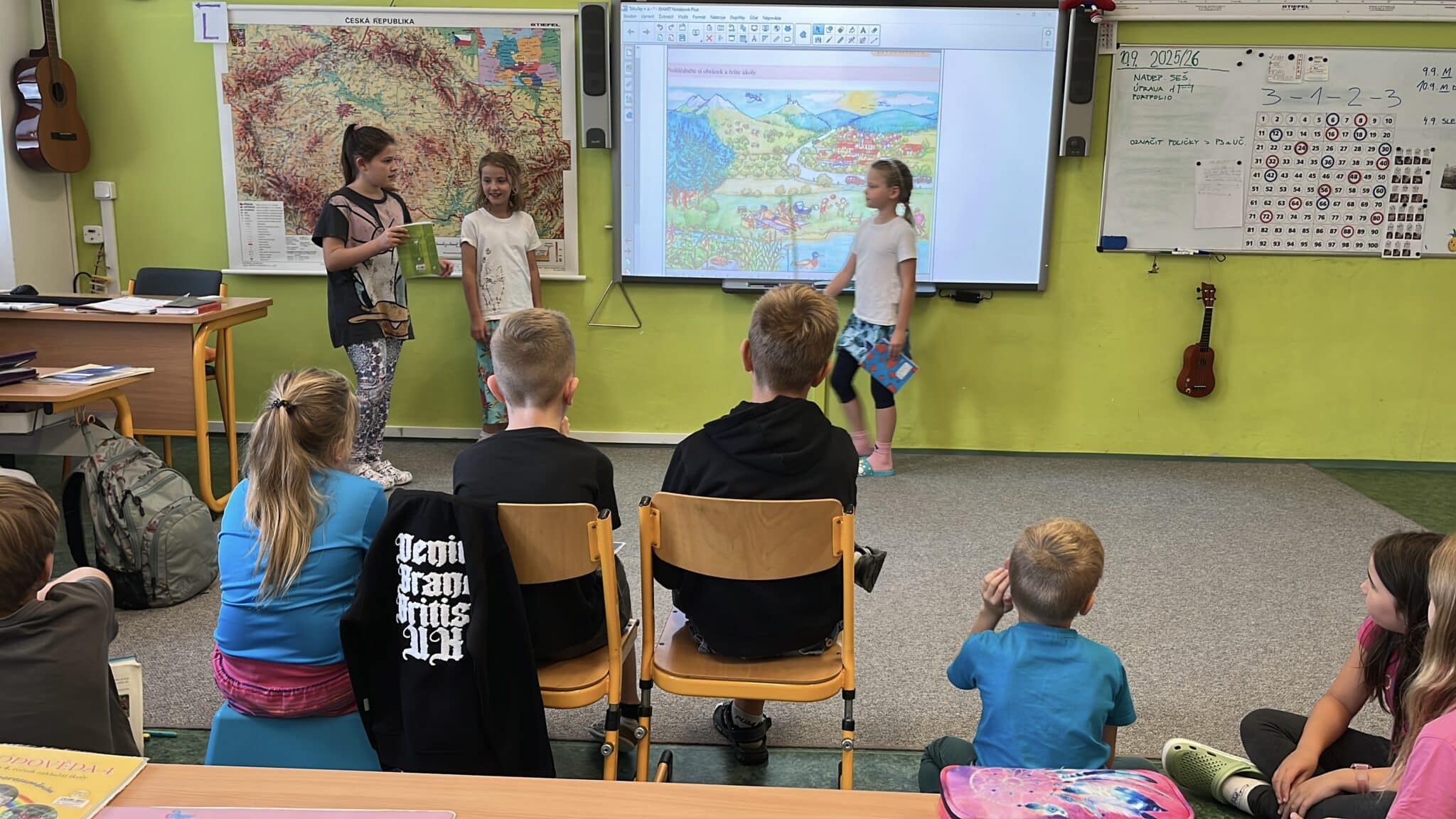 Takto se učíme pracovat ve skupině, vyhledávat důležité informace a domlouvat se. Učíme se také text zjednodušit, graficky ho upravit a správně ho prezentovat. Velice obtížná, ale také nesmírně přínosná je práce s videem, která nám umožňuje zpětně reflektovat naši práci.