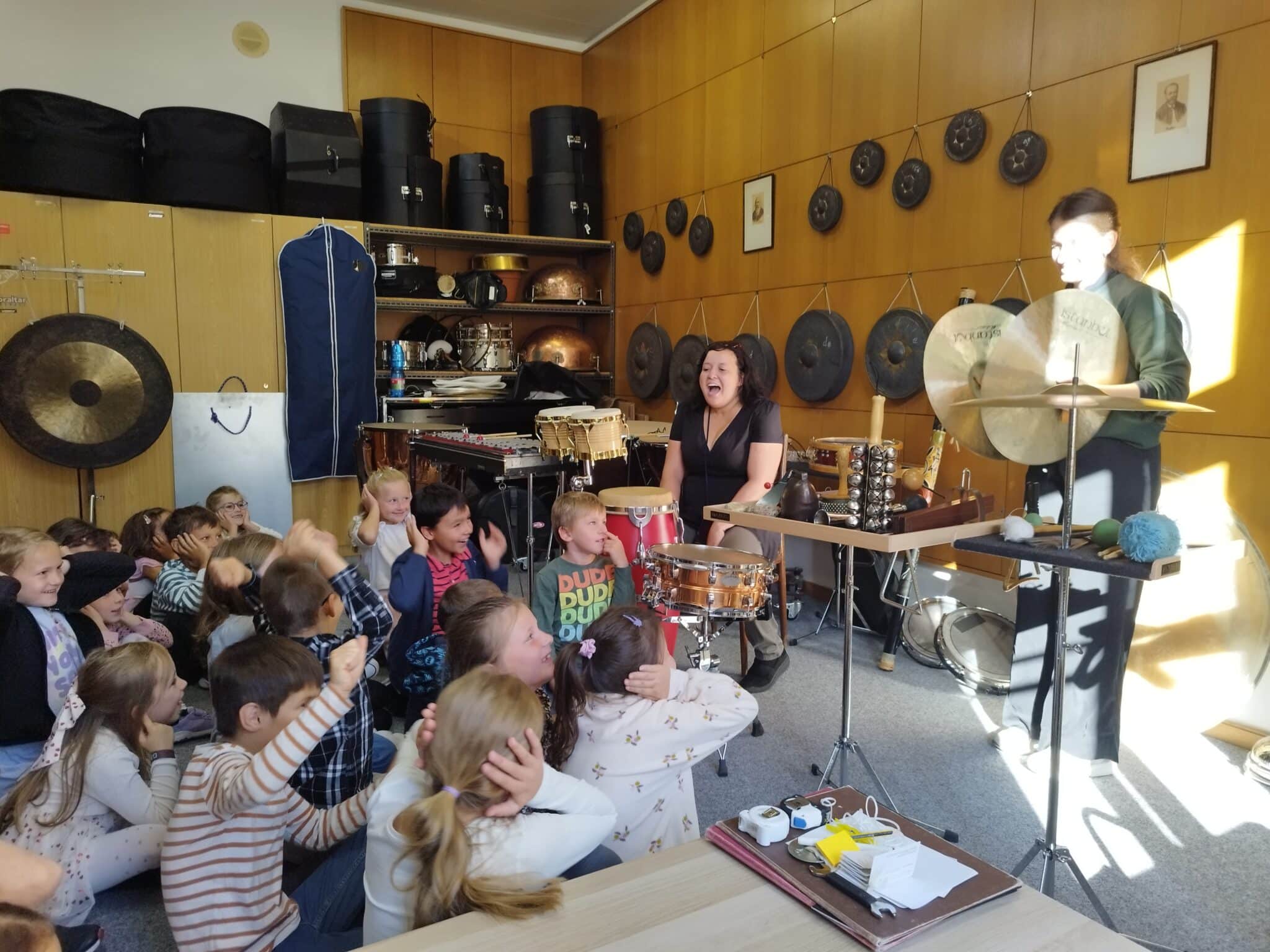 Žáci II. B ZŠ Křídlovické Brno navštívili ve středu 17. září workshop ve Filharmonii Brno s názvem Na buben se netluče.