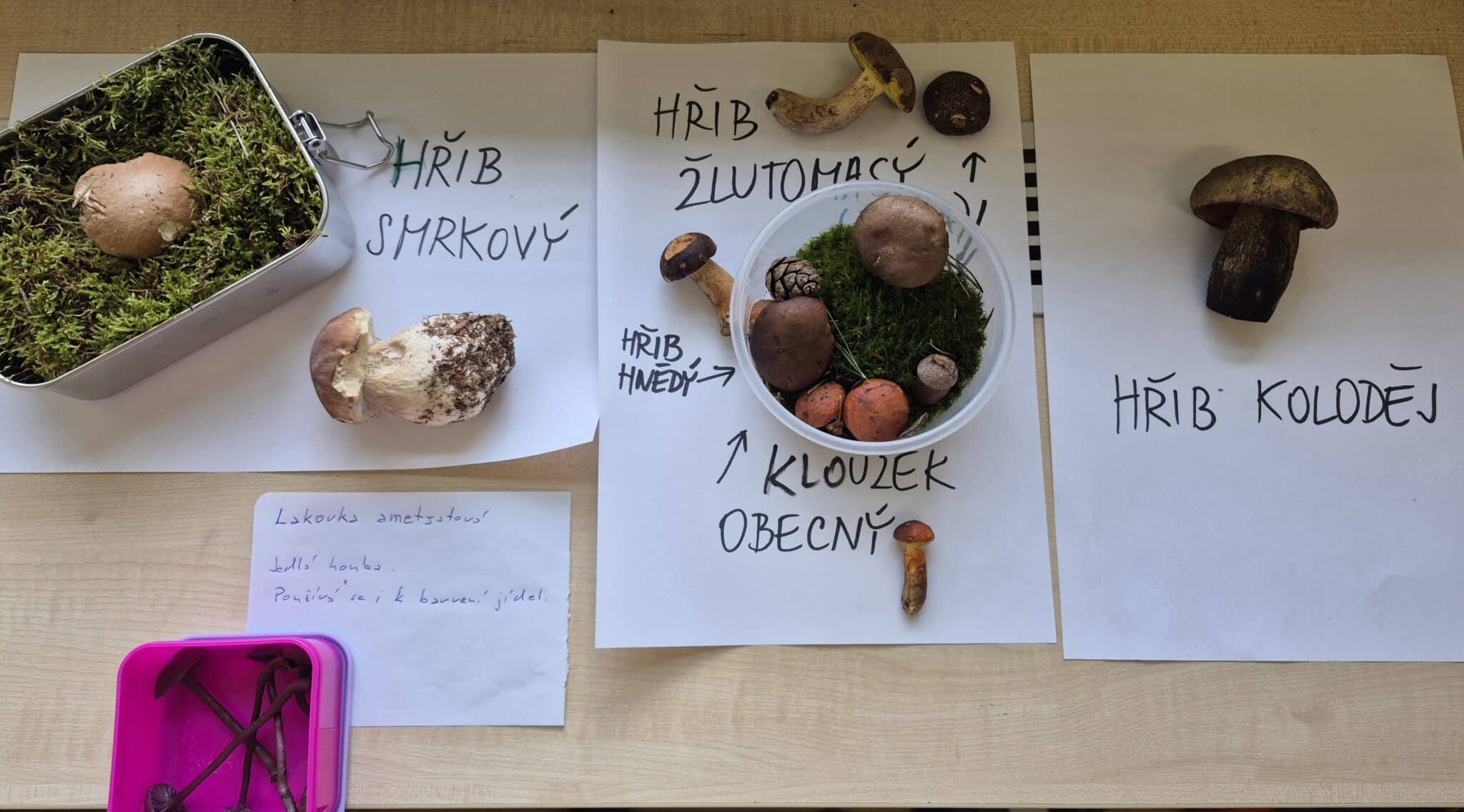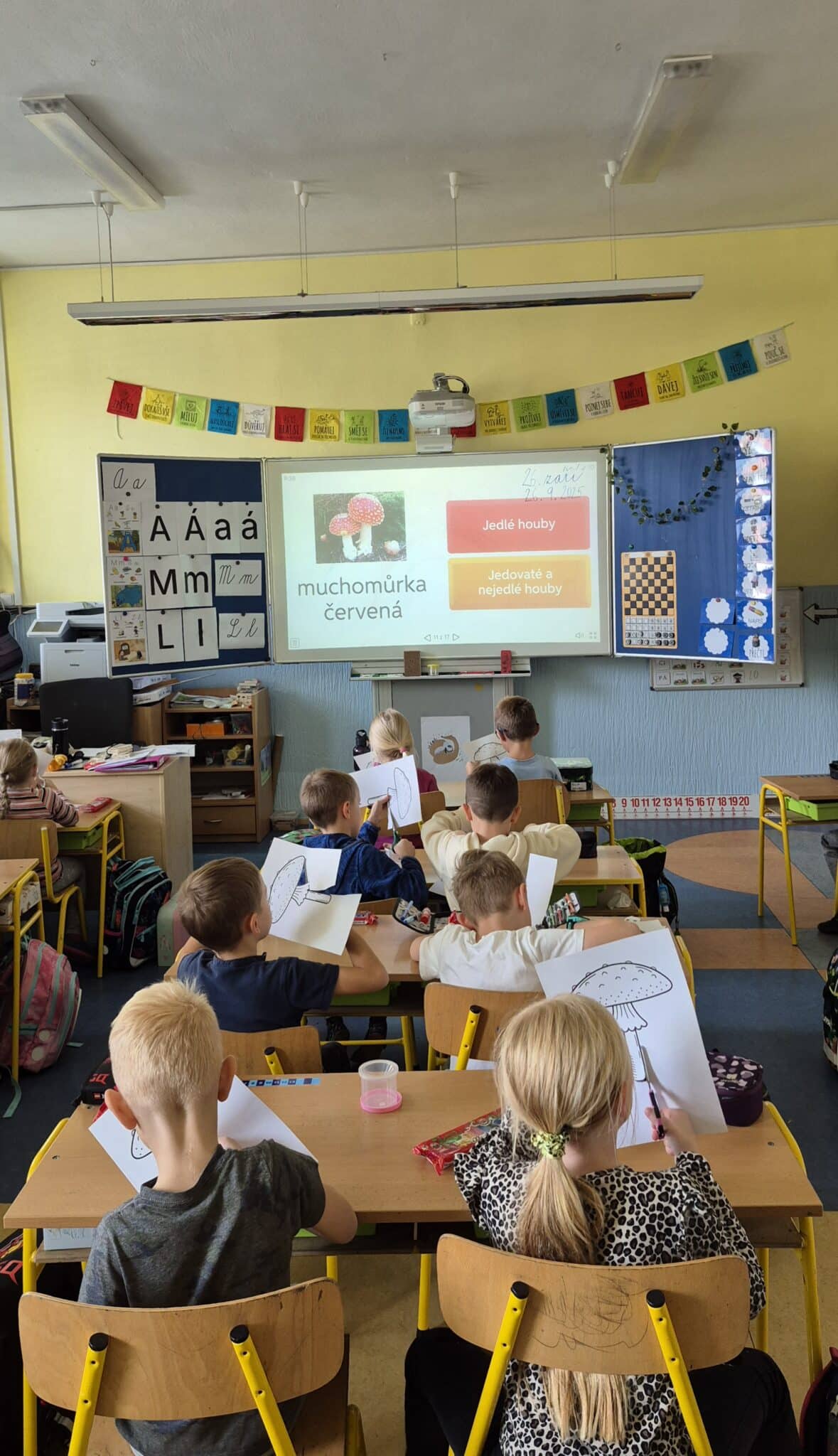 Téma hub nás doprovázelo i v českém jazyce a matematice. Na závěr jsme si vyrobili muchomůrky a střihli si i houbový kvíz.