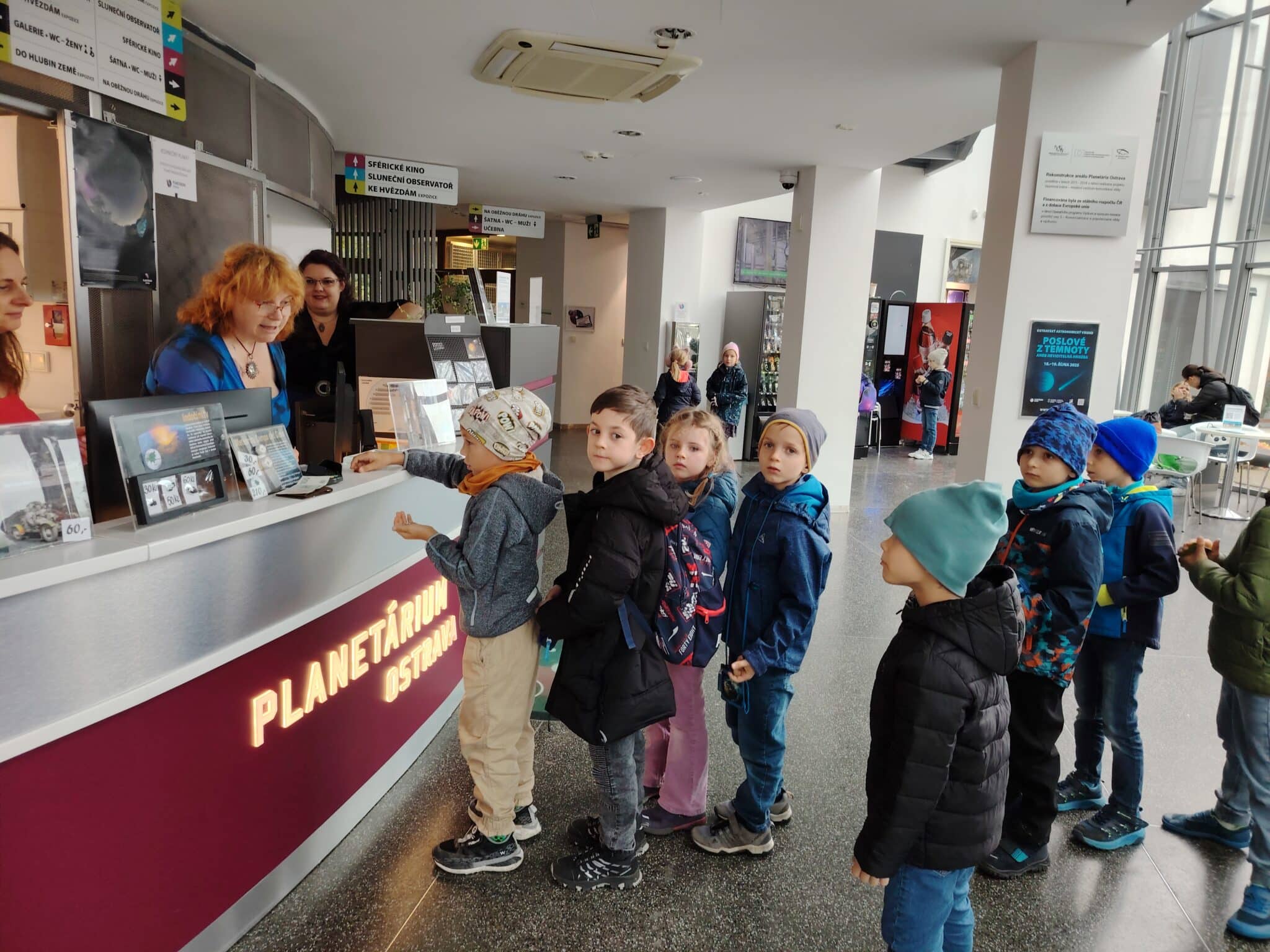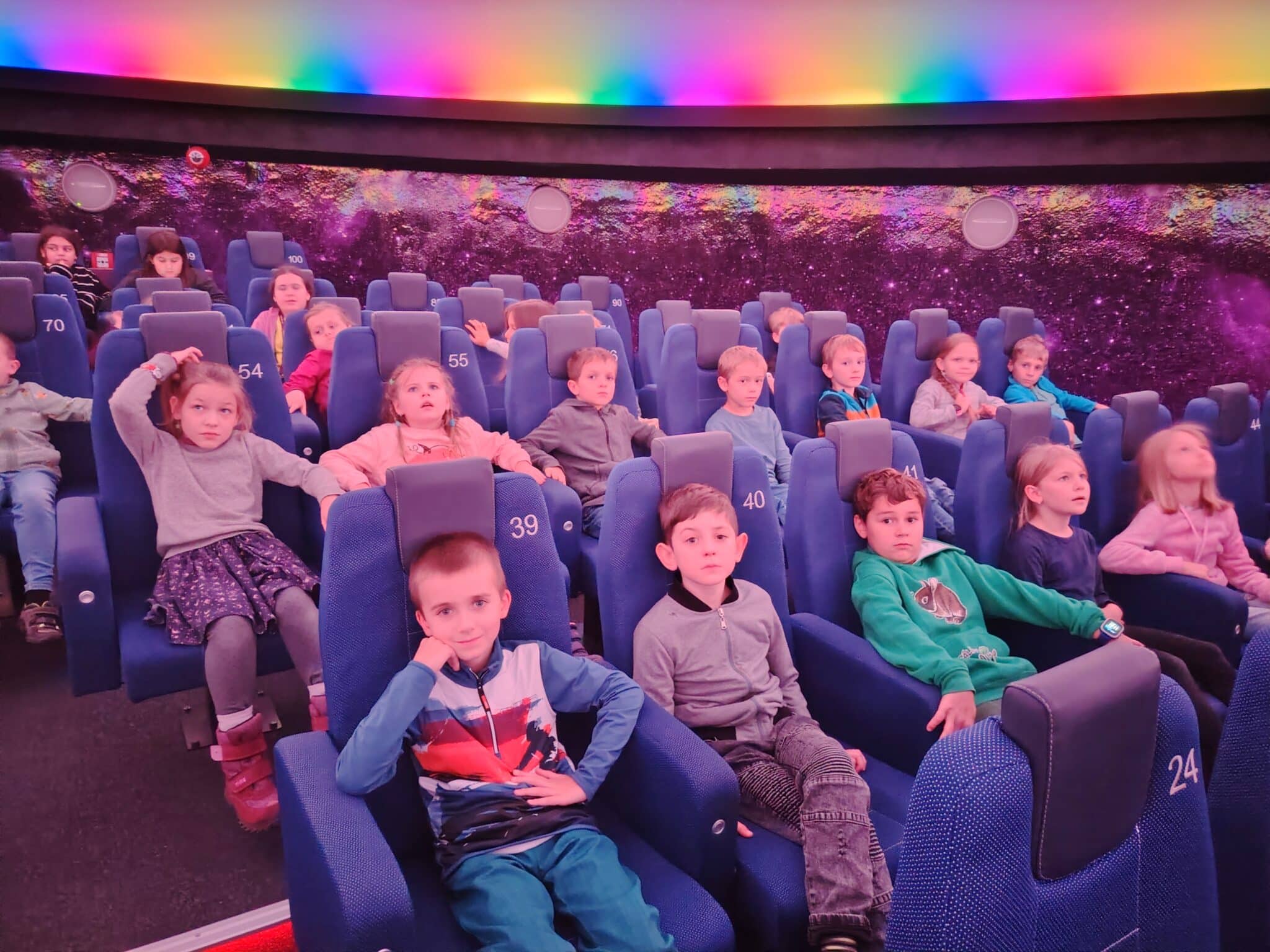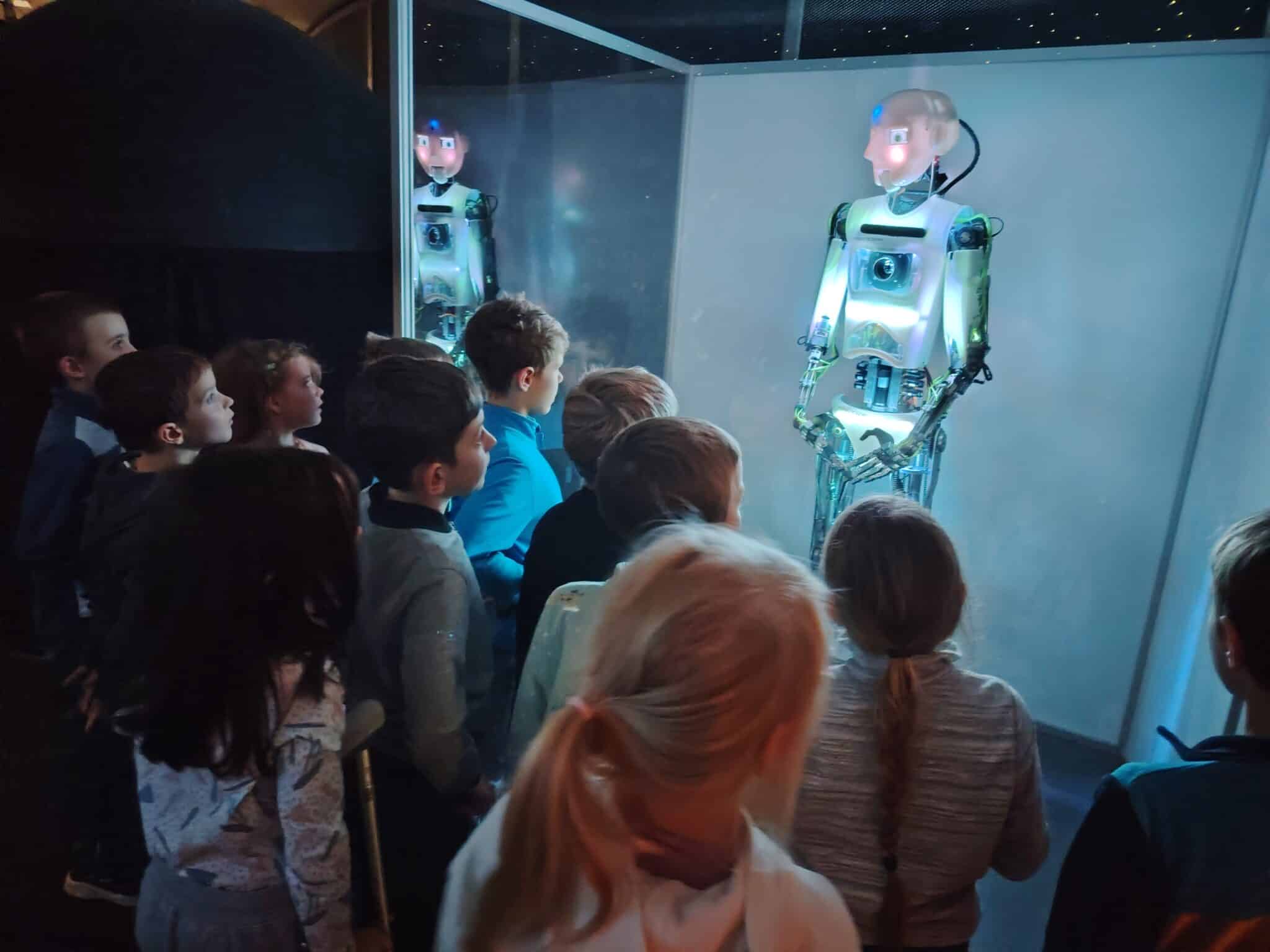 Poté děti zhlédly hodinový výukový program Lucie a tajemství padajících hvězd ve sférickém kině. Nezapomněli jsme se také zastavit za robotem Engiim, kterého dobře známe z videí, a od kterého jsme se už mnoho o vesmíru dozvěděli.