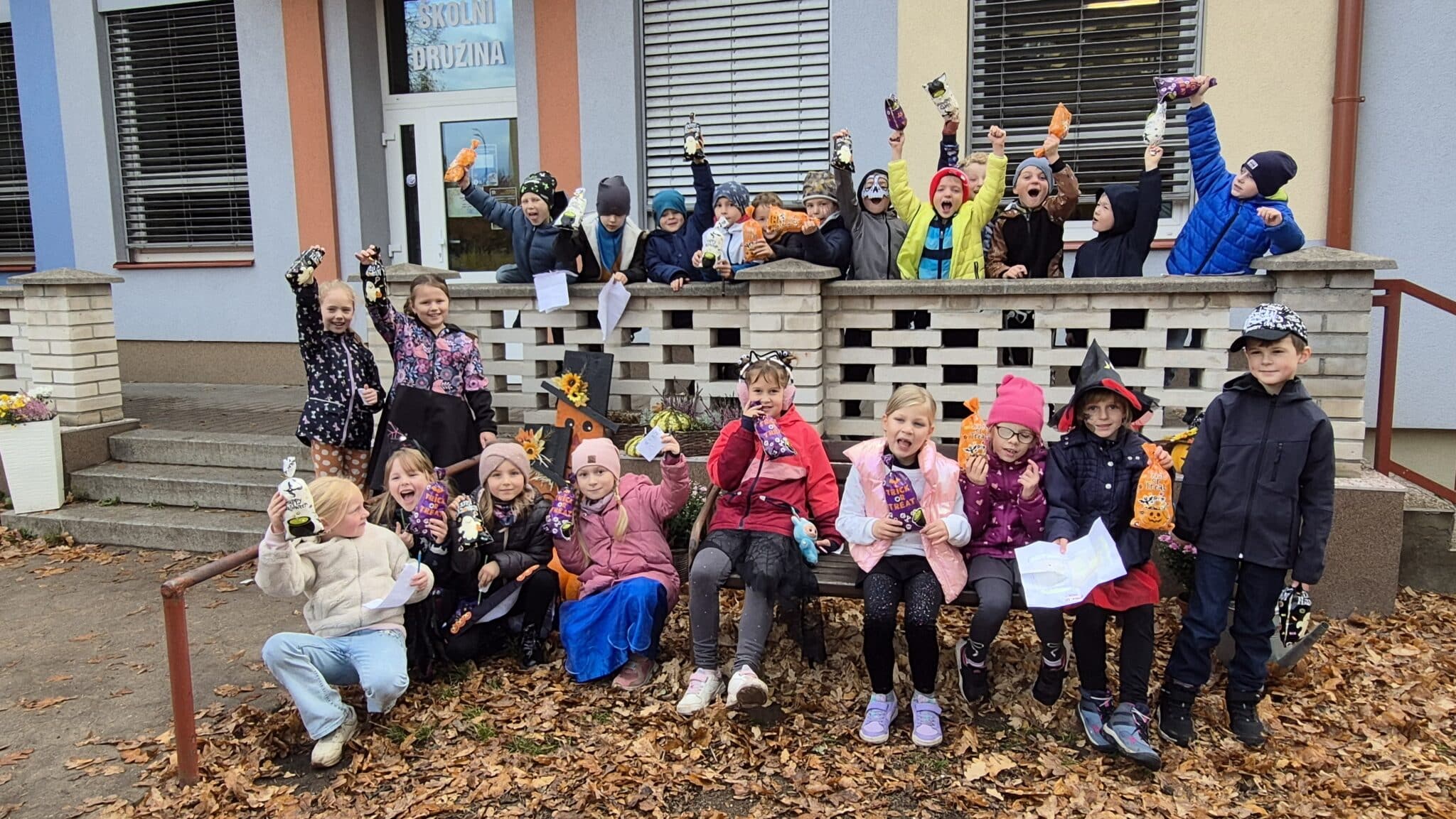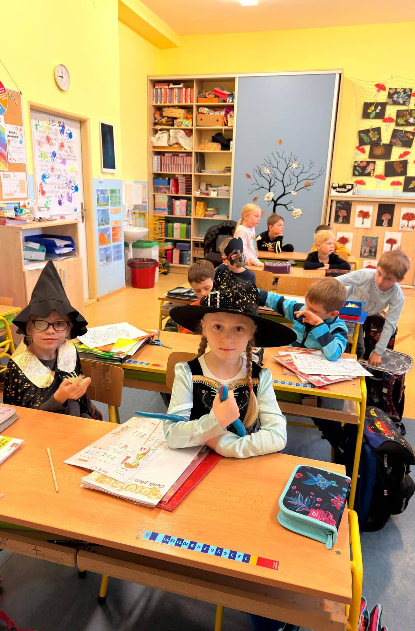 23. října jsme se ve škole sešli jak ve strašidelných, tak v puntíkatých kostýmech (škola se zapojila do Puntíkového dne na podporu lidí bojujících s lupénkou). Celý den nás provázely písničky z filmu Ať žijí duchové, poslechli jsme si i V domě straší duch.