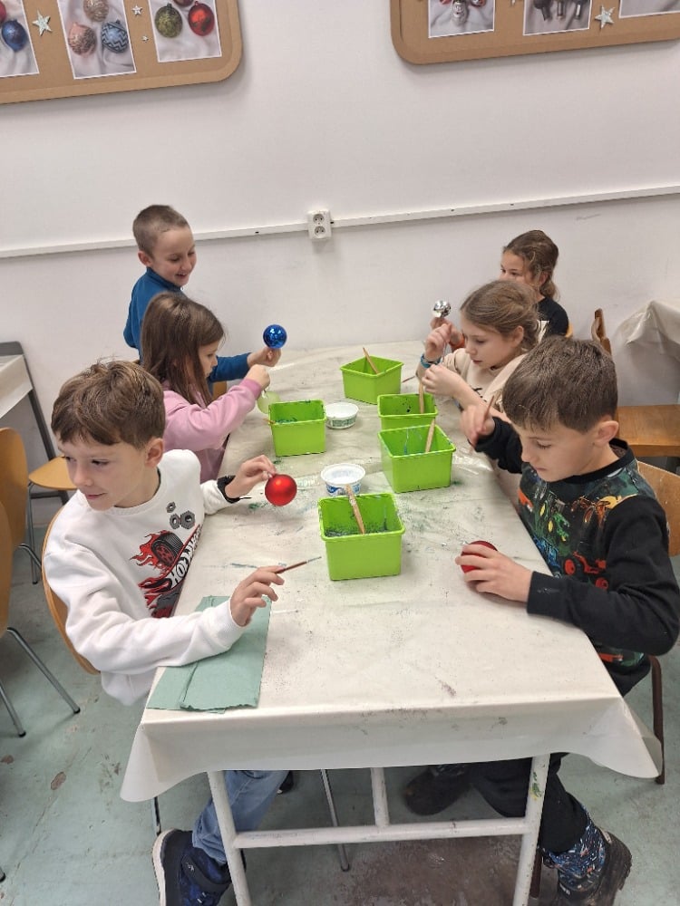 V místním obchůdku si pak děti mohly pořídit „voňavou památku“ domů. Dále naše vyjížďka směřovala do firmy s více než 60-ti letou tradicí, Irisa Vsetín, do opravdového království vánočních ozdob. Protože je předvánoční čas, stačilo pár kroků mezi třpytivými baňkami a děti byly rázem naladěné na Vánoce. Bedlivě jsme naslouchali a sledovali výrobu skleněných ozdob. Samotné foukání bylo velmi zajímavé, malování ohromující. Z velké nabídky si děti vybraly tu svou baňku, která se stala jedinečnou díky zdobení a tak jsme se alespoň na chvíli stali malíři a malířkami. Podívali jsme se na výstavu baněk a nakonec přišla nejobtížnější část dne – vybrat si tu správnou vánoční ozdobu v podnikové prodejně.