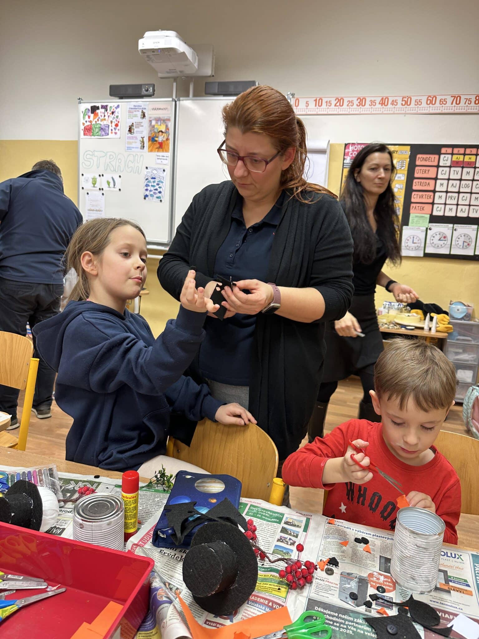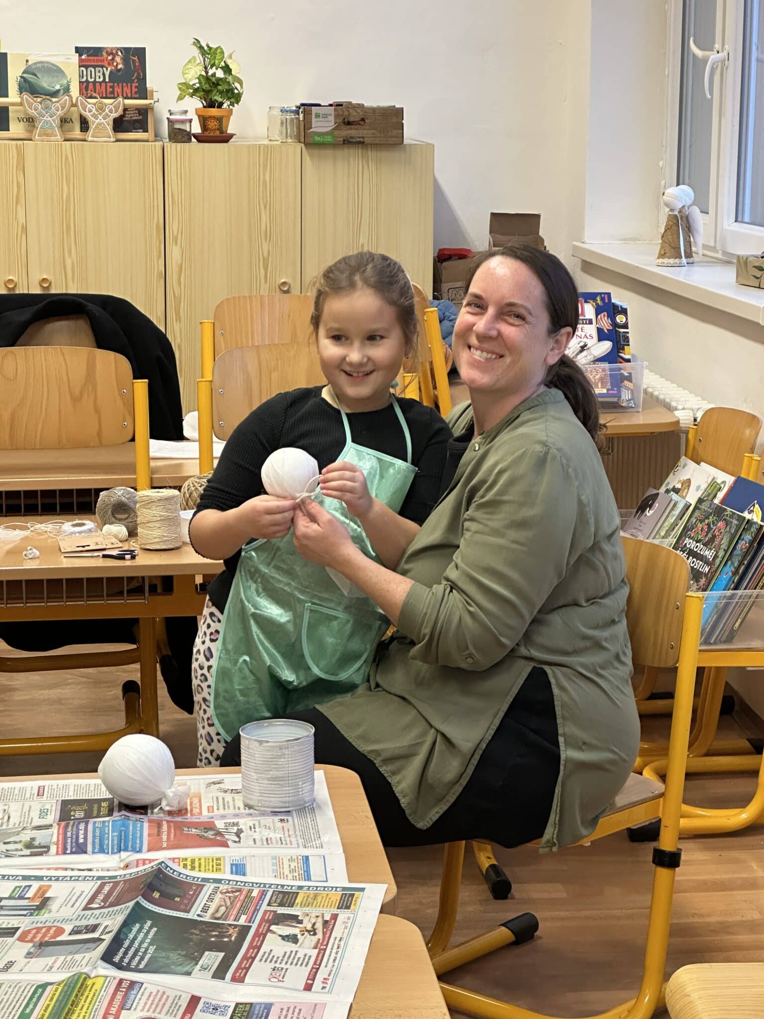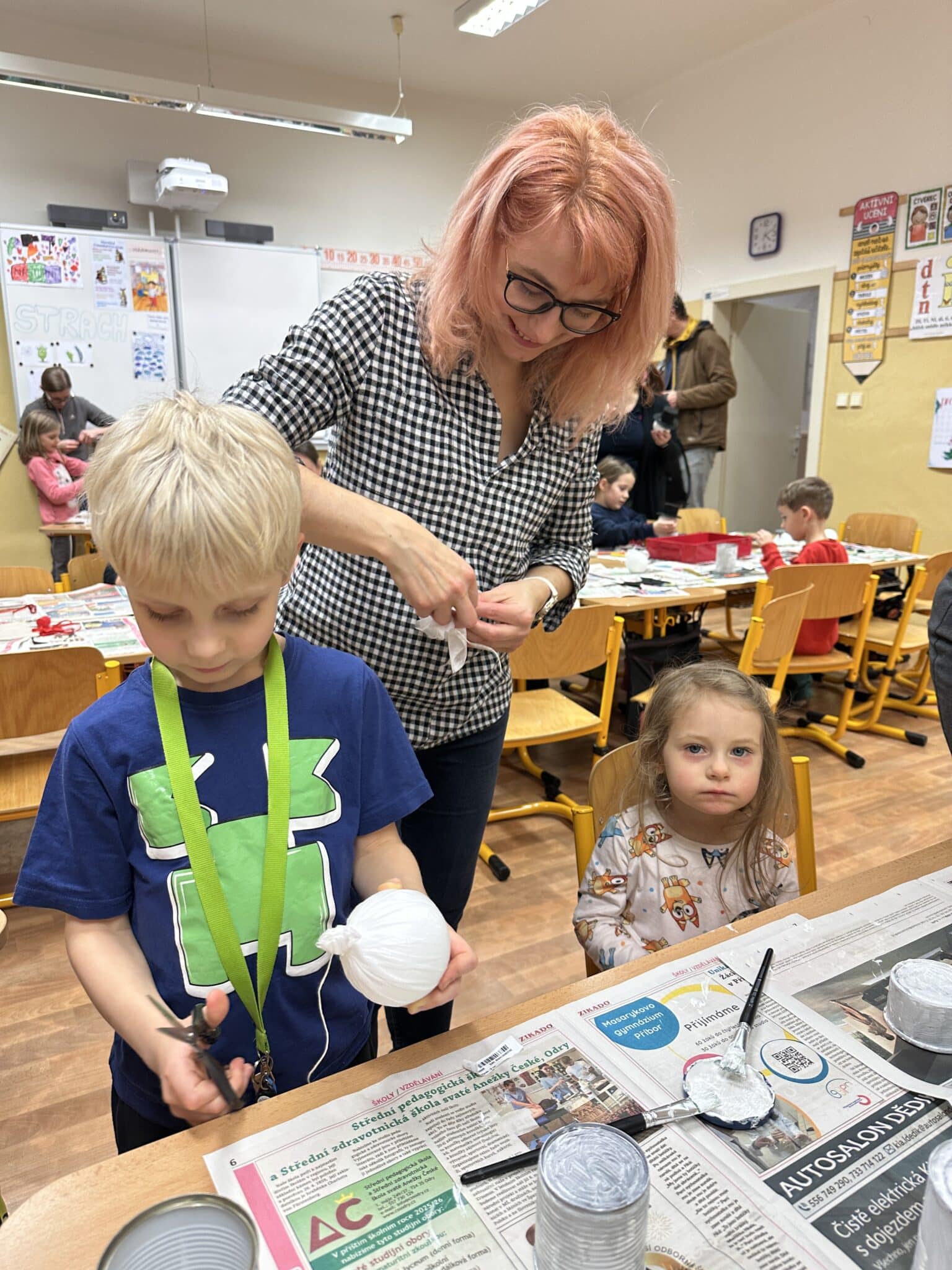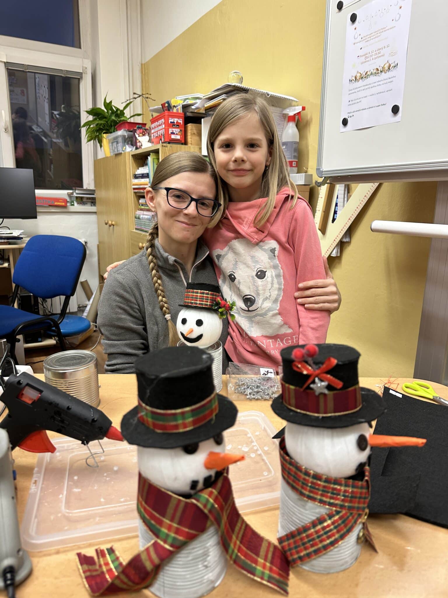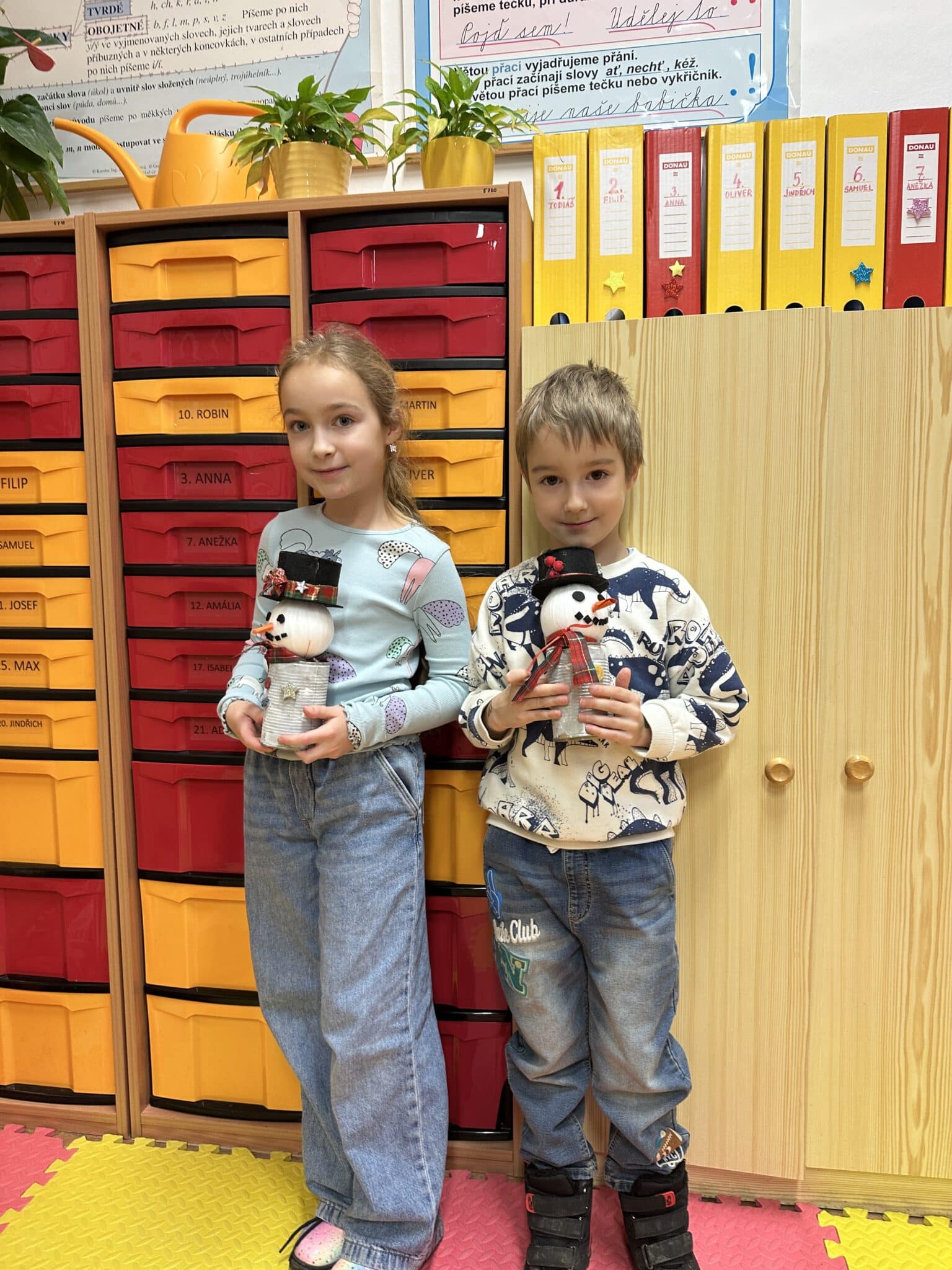Pod vedením paní Šárky Žárské a za aktivní pomoci rodičů si děti vyrobily vánočního sněhuláka z plechovky a polystyrenové koule. Každý sněhulák byl originál a odrážel dětskou fantazii i pečlivou práci malých tvůrců. Vznikaly tak krásné dekorace, které si děti donesly domů, aby jim vánočně vyzdobily domácnost. Tvoření bavilo malé i velké, jen jeden malý bráška celé adventní odpoledne spokojeně prospal a vánoční atmosféru si tak užil po svém.