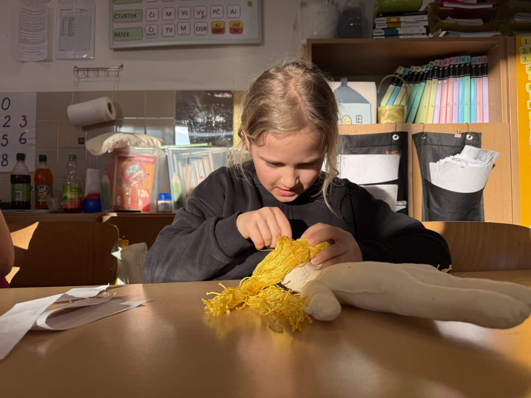 Společně jsme si s dětmi ze 4.B ve Frenštátě pod Radhoštěm povídali o tom, co znamená pomáhat druhým a proč má smysl myslet i na ty, kteří nemají tolik štěstí jako my. Rozhodli jsme se zapojit do projektu UNICEF „Adoptuj panenku a zachráníš dítě“ a sami jsme si jednu panenku adoptovali. Právě tehdy nás napadlo, že bychom to mohli zkusit i opačně — vytvořit panenky vlastní a poslat je dál, aby mohly pomáhat ještě jednou.