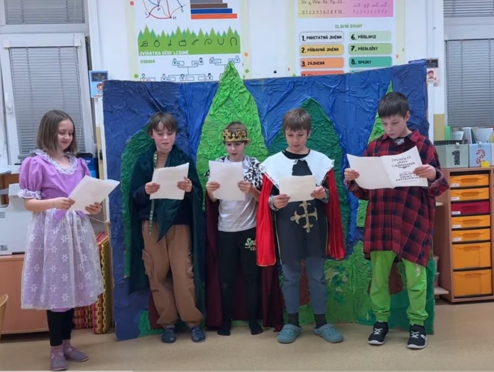 Třída 4. B prožila své nocování ve společnosti díla Zdeňka Svěráka. Už během týdne se děti seznamovaly s rýmy v jeho básních a písních a četly si pohádky, které jsou typické jeho laskavým a chytrým humorem. Na samotném nocování pak přišla řada i na divadelní tvorbu — a s ní samozřejmě také na Divadlo Járy Cimrmana.