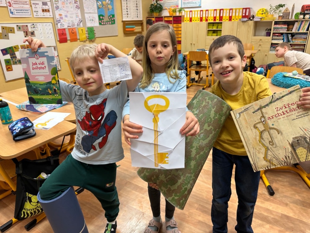 Dobrodružství ale zdaleka nekončilo. Děti se vydaly také na prohlídku školní půdy, kterou vedla postava školníka – pan učitel Ondryáš, znalec historie školy a průvodce opravdu zasvěcený. Po večeři pak přišla na řadu skupinová práce a luštění deseti dobrodružných únikovek. Za každou vyřešenou část získala skupina kousek zlatého klíče k pokladu. A co bylo pokladem? Nick jiného než kniha. Tu si nakonec zasloužily všechny děti, protože nadšení, spolupráce i chuť pustit se do každého úkolu byly opravdu obdivuhodné.