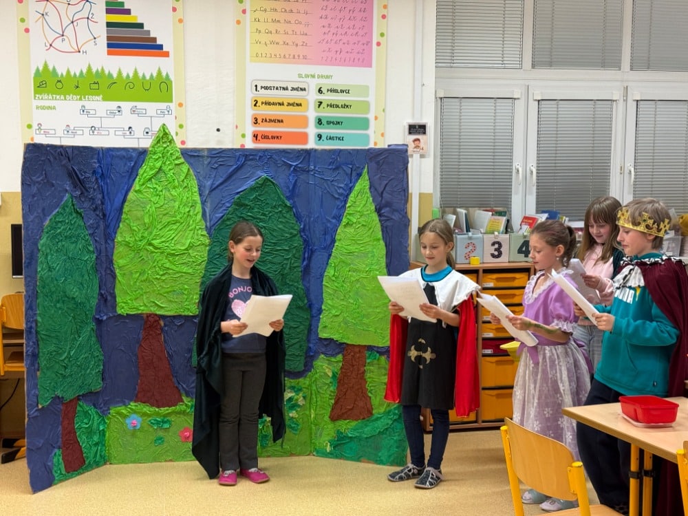 V další části večera si čtvrťáci opět ve skupinkách připravovali a hráli krátké scénky z pohádek. Teprve poté se seznámili s celou pohádkou a mohli naplno ocenit humor, který se v ní skrývá. Ani zde nechyběla oblíbená prohlídka školní půdy, kterou absolvovali stejně jako druháci. Byla velmi zajímavá i zábavná — děti jen těžko odhadovaly, kde přesně se nacházejí, a podle sklonu střechy tipovaly, v jaké části školy vlastně jsou.