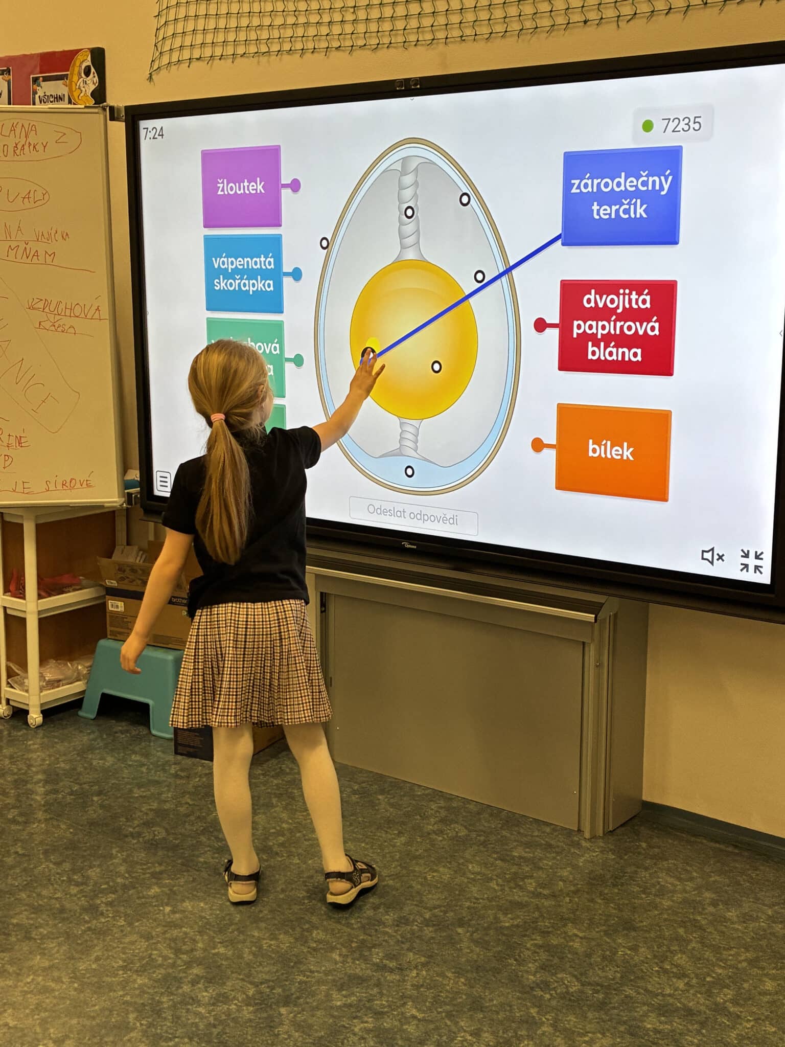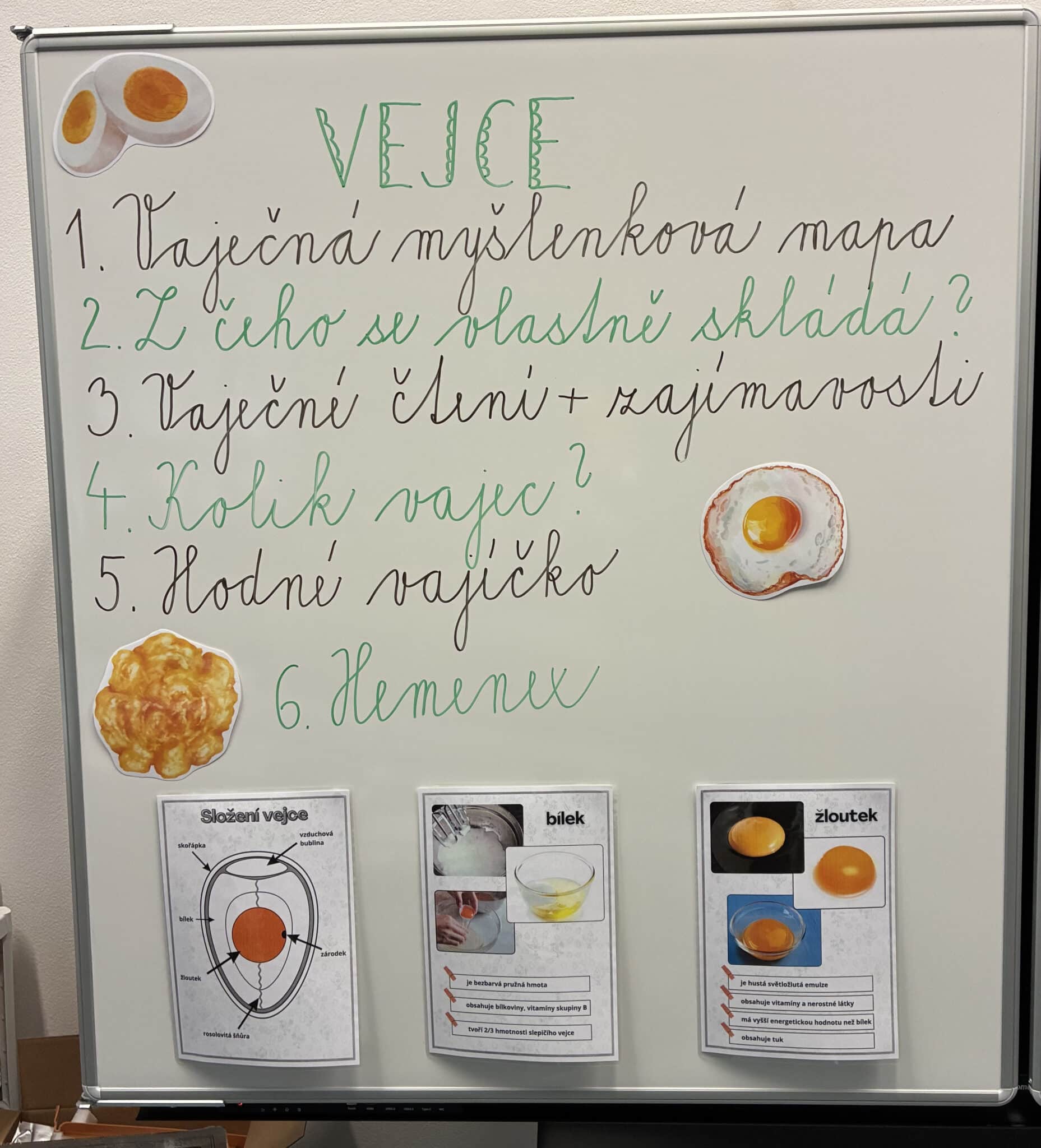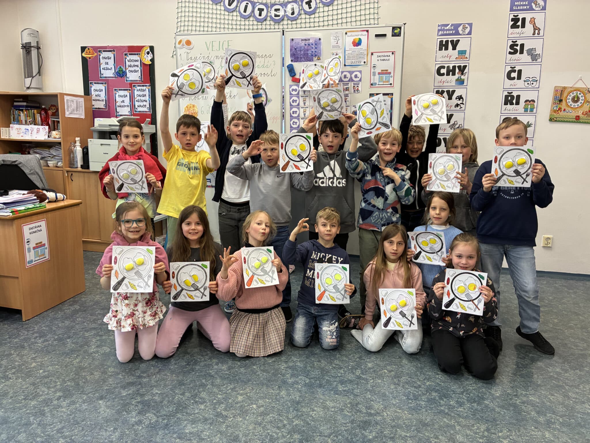 Děti ze 2. E Masarykovy ZŠ v Újezdě nad Lesy si užily dopoledne ve znamení vajíčka 🥚. Společně si vytvořily myšlenkovou mapu, třídily obrázky živočichů a podrobněji se věnovaly těm, kteří se líhnou z vajec. Zkoumaly stavbu vejce, pozorovaly ho pod mikroskopem a objevovaly zajímavosti o jeho barvách i vlastnostech. Velký úspěch mělo zejména žraločí vejce.